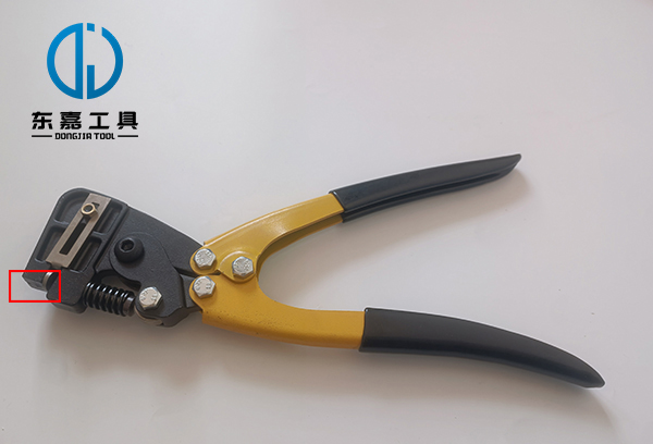 经过反复确认细节尺寸,我们技术人员决定选用新款打孔钳DJP18080, 这款打孔钳专门针对厚度0.8mm以上不锈钢材料设计,冲针锋利耐磨;然后把打孔钳钳口位置进行切割,解决了前部空间受限的问题。